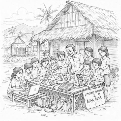 Memberikan Literasi Digital dan Kecerdasan Buatan untuk anak desa dalam waktu yang terjadwal ke setiap dusun dengan suasana menyenangkan